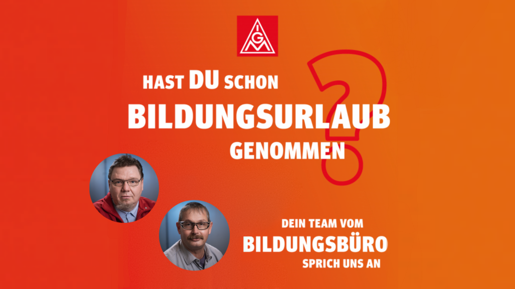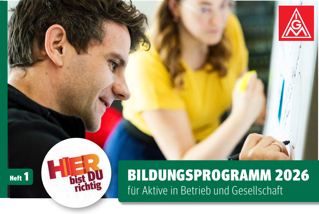 Die IG Metall bietet darüber hinaus viele weitere Seminare zu spannenden Themen an. Einen umfassenden Überblick der überregionalen Seminare findet ihr hier: Bildungsprogramme der IG Metall.