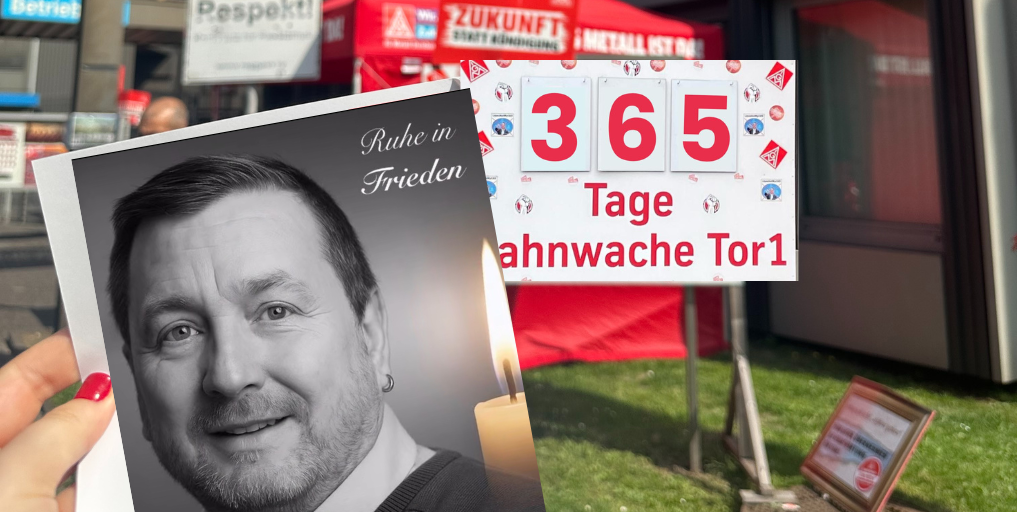 seit einem Jahr steht unsere Mahnwache an Tor 1 getragen von Zusammenhalt, Überzeugung und Herzblut. Sie war das Wohnzimmer unseres Kollegen Olaf Vopel, der sie mit Leidenschaft ins Leben rief und der viel zu früh von uns gegangen ist.